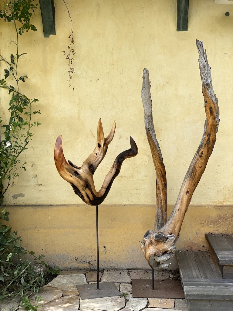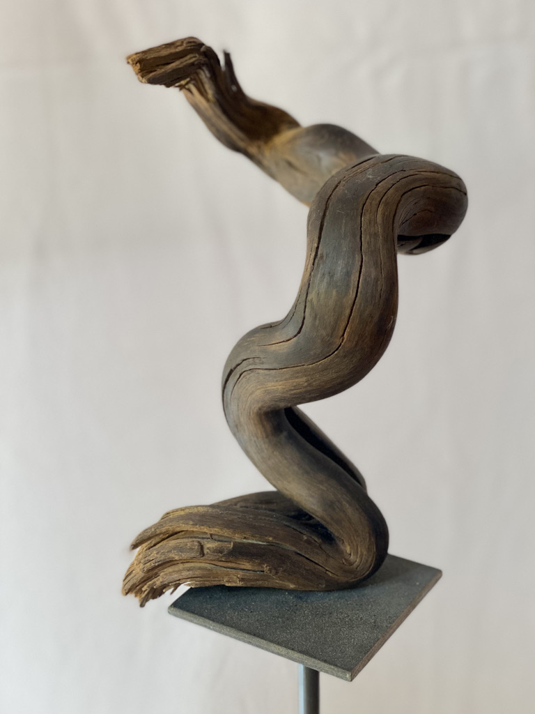 Seit 2018 suche ich in Wildbächen und Geröllhalden Schwemmholz. In einem fliessenden Schaffensprozess schäle ich eine neue, natürliche Form heraus und achte dabei auf Strömunsformen und Wachstumsbewegungen
